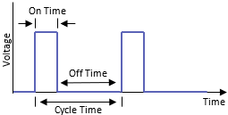 Duty Cycle = On Time / (On Time + Off Time) x 100% (1)